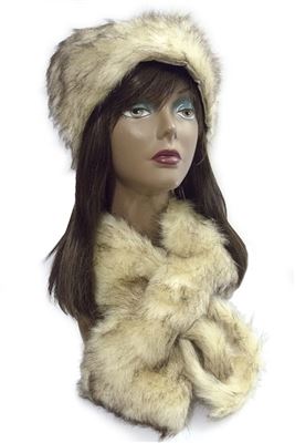 / FAUX FUR SCARF & HAT SET – Cream, Khaki