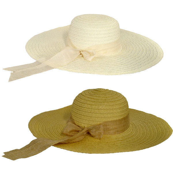 LADIES WIDE BRIM HAT WITH COLOURED RIBBON